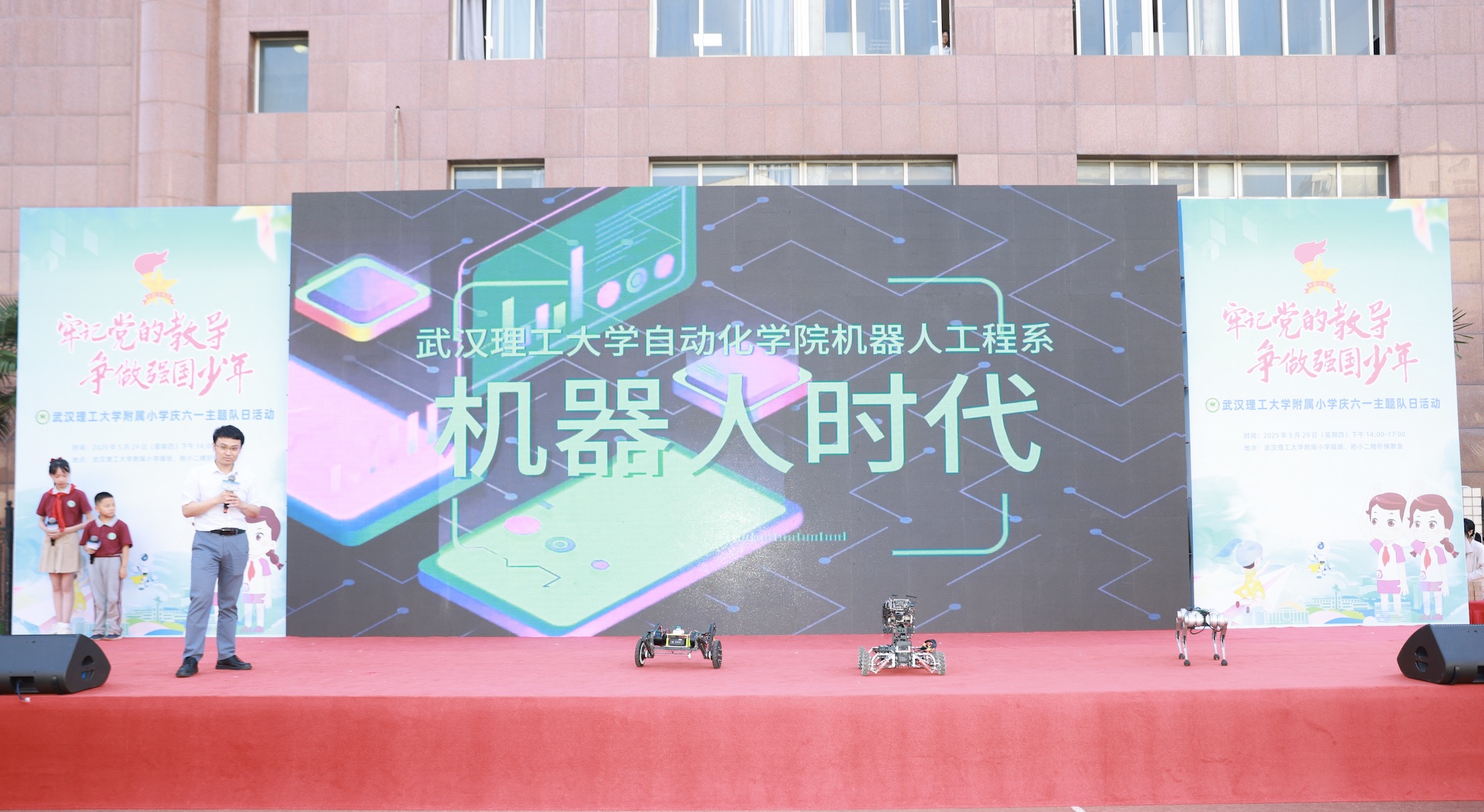 近日,武汉理工大学附属小学开展“牢记党的教导,争做强国少年”主题队日活动,校园洋溢欢乐氛围。活动包含科普讲座、文艺表演、科技展示等,本科生院院长肖静等多位嘉宾出席。