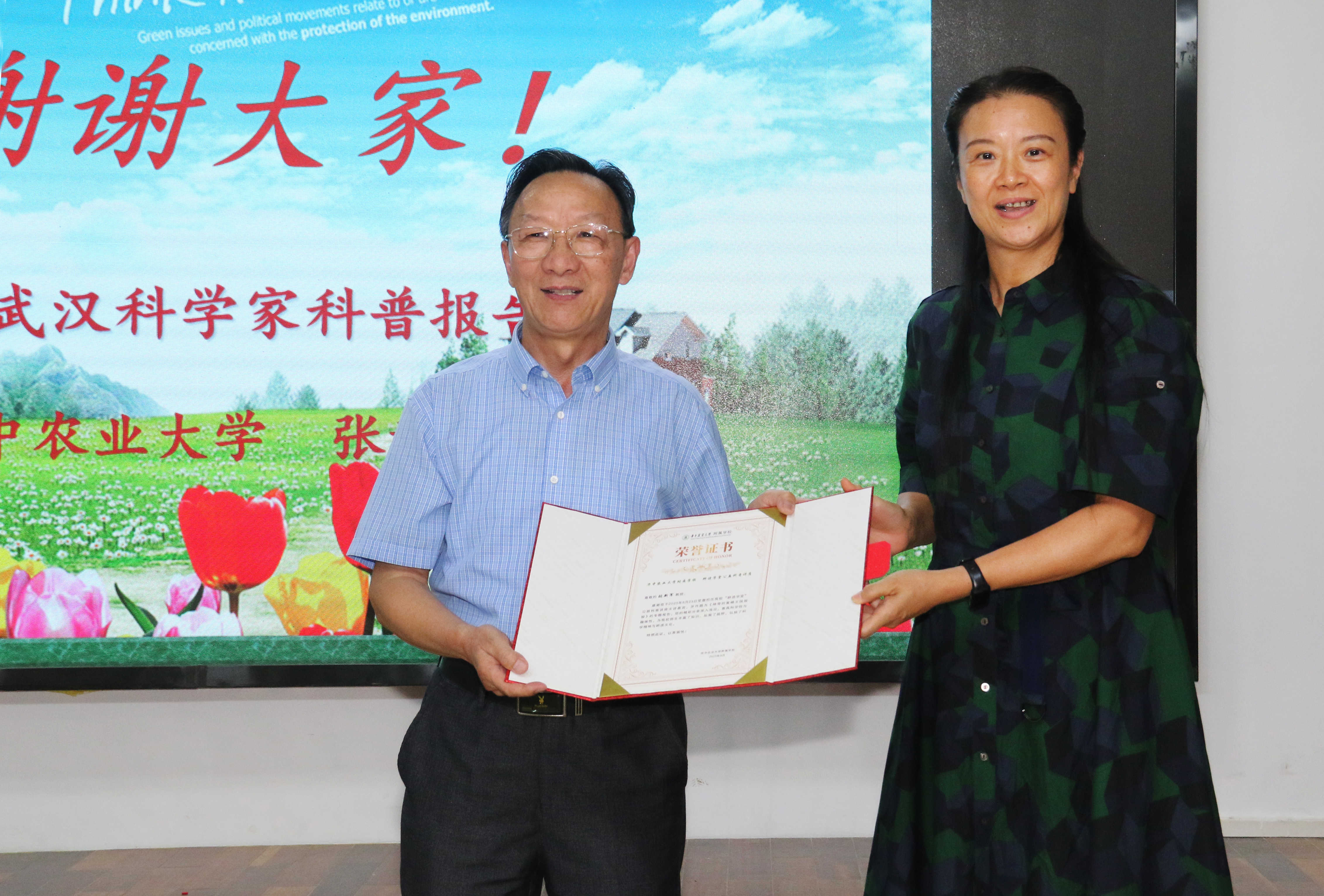 中科院武汉科学家科普报告团专家张新军教授为五年级160名学生揭秘蜜蜂1.35亿年演化史,通过“5只眼睛”“舞蹈语言”等趣味知识,讲解蜂群分工与生态保护。互动环节中,学生们建立起"保护蜜蜂就是保护自然"的认知。华中农业大学附属学校林宏伟书记为张教授颁发了“耕读学堂公益科普讲座”荣誉证书。