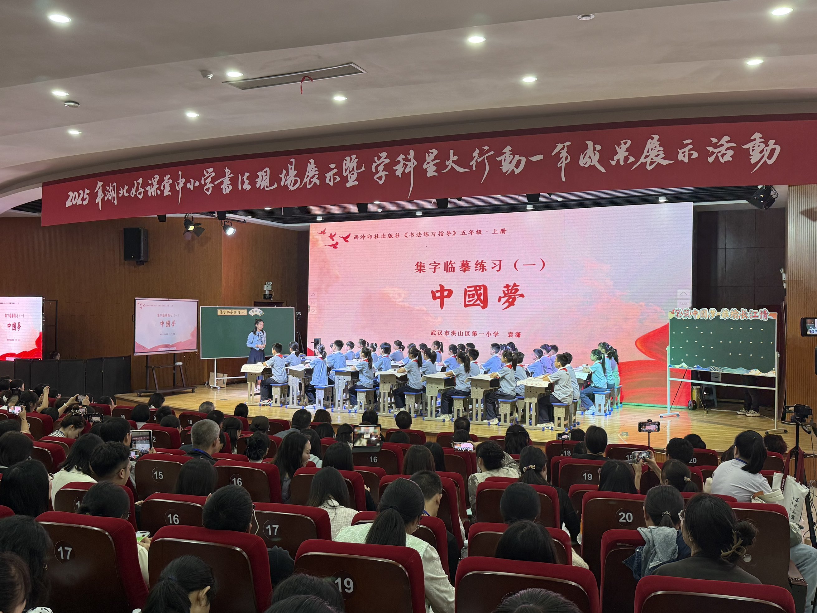 其中,袁潇老师代表武汉市执教书法课《集字临摹(一)“中国梦”》,以“中国梦”为精神内核,将书法技艺与文化传承、价值引领深度融合,在笔墨流转间搭建“个人—城市—国家”的情感桥梁,尽显中华传统文化魅力。