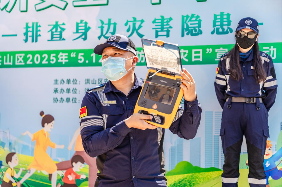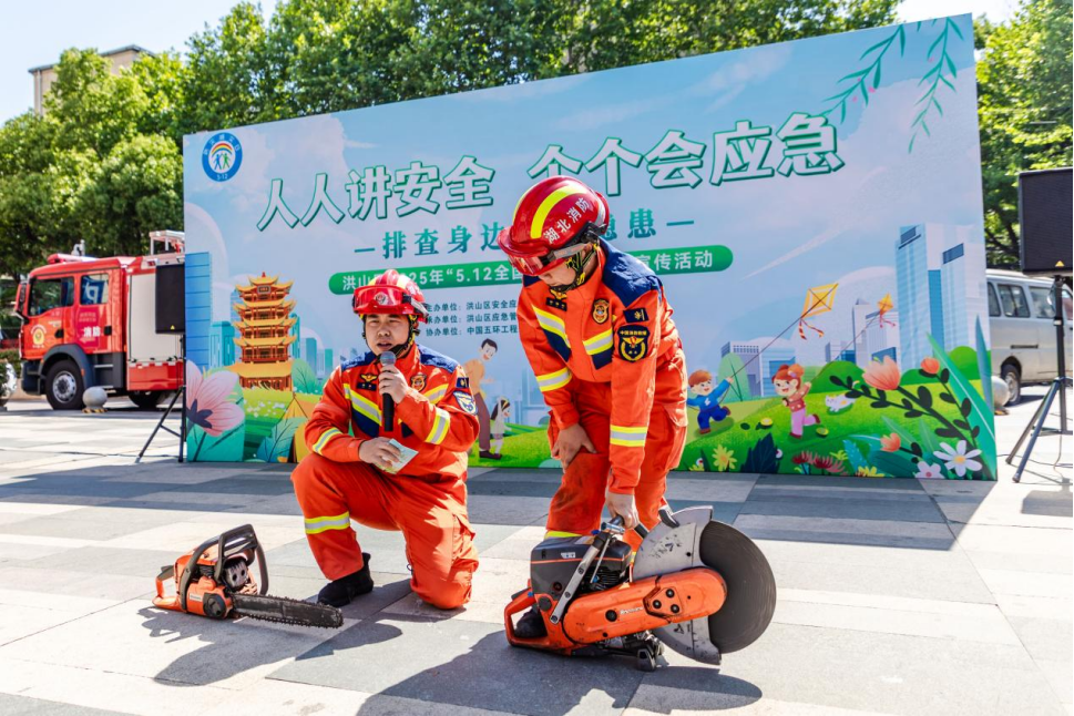 活动伊始,洪山消防救援大队卓刀泉站消防队员陈豪,为现场观众讲解了无齿锯、干粉灭火器等消防器材的使用方法及各类安全知识。随后,黄色网址 轰九应急救援队队长叶颂杰向居民演示海姆立克急救法和心肺复苏操作要领。叶颂杰利用海姆立克背心和人体模型,分步骤讲解“剪刀、石头、布”急救口诀,实践操作胸外按压、人工呼吸技巧等急救技能,并邀请现场居民实操体验,“以前觉得急救动作简单,自己上手才发现按压深度、频率都有讲究,必须反复练习才能规范。”参加体验后的居民纷纷感慨。