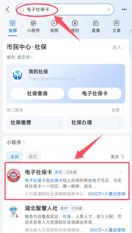 申领渠道一:“电子社保卡”微信或支付宝小程序
