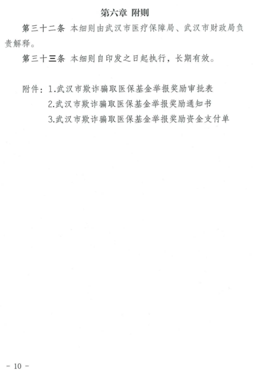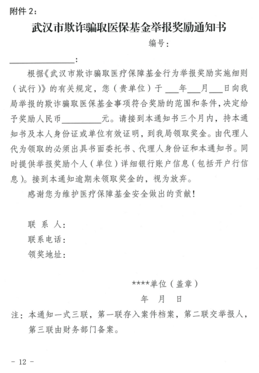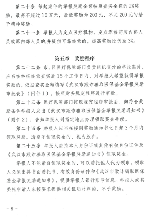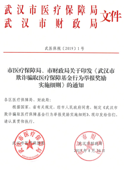 标     题 关于印发《武汉市欺诈骗取医疗保障基金行为举报奖励实施细则》的通知