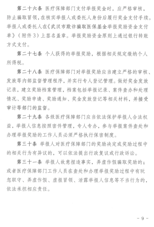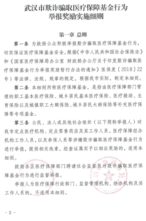 关于印发《武汉市欺诈骗取医疗保障基金行为举报奖励实施细则》的通知