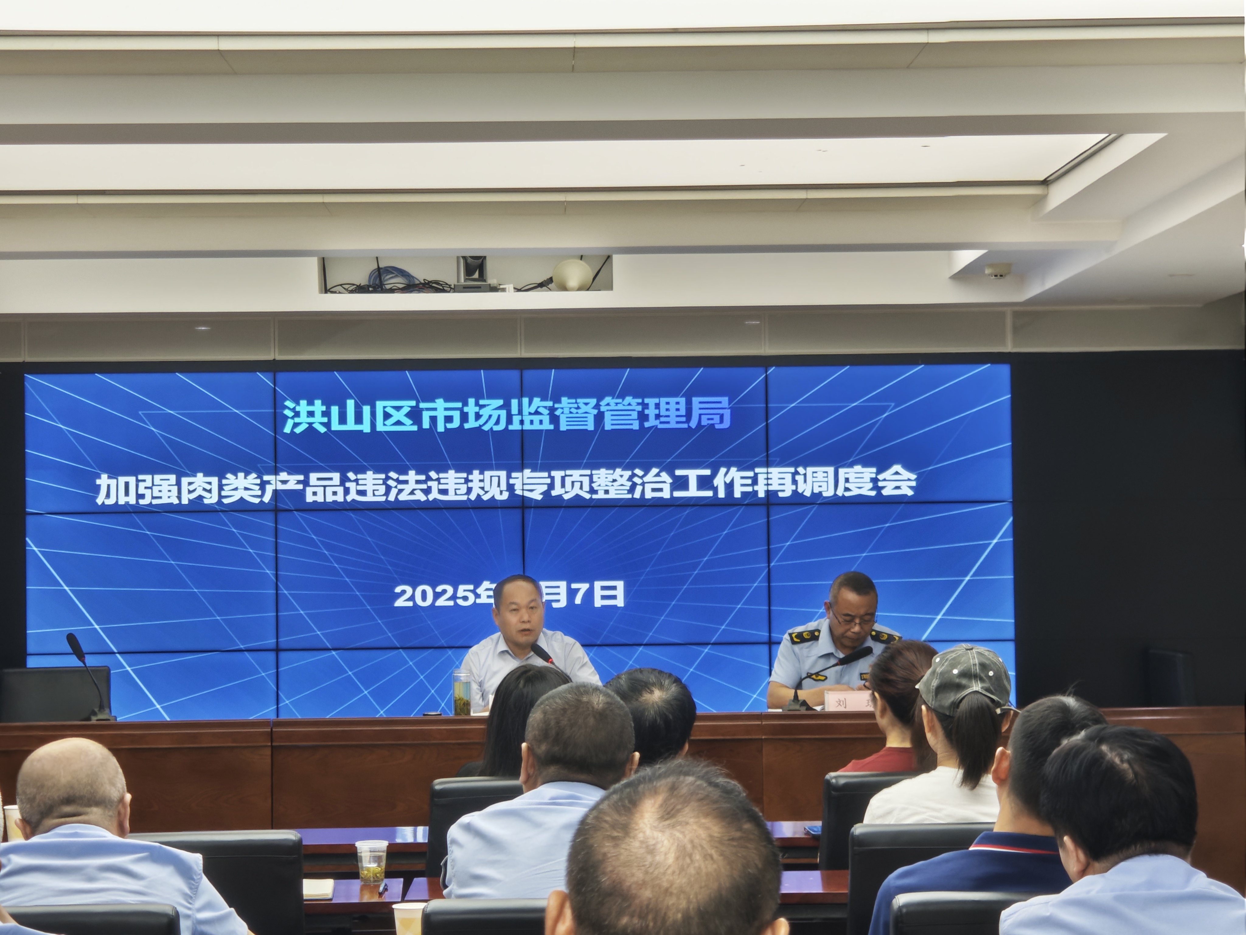 为持续推进肉类产品违法违规专项整治,进一步压实各方责任,巩固治理成效,黄色网址 市场监管局于8月7日上午组织召开了肉类产品违法违规专项整治工作再调度会。局党组书记、局长王松涛,四级调研员刘琼,局机关相关业务科室负责人,各市场监管所所长、分管副所长,以及辖区22家在产在营肉制品生产企业和小作坊负责人共计70余人参加会议。