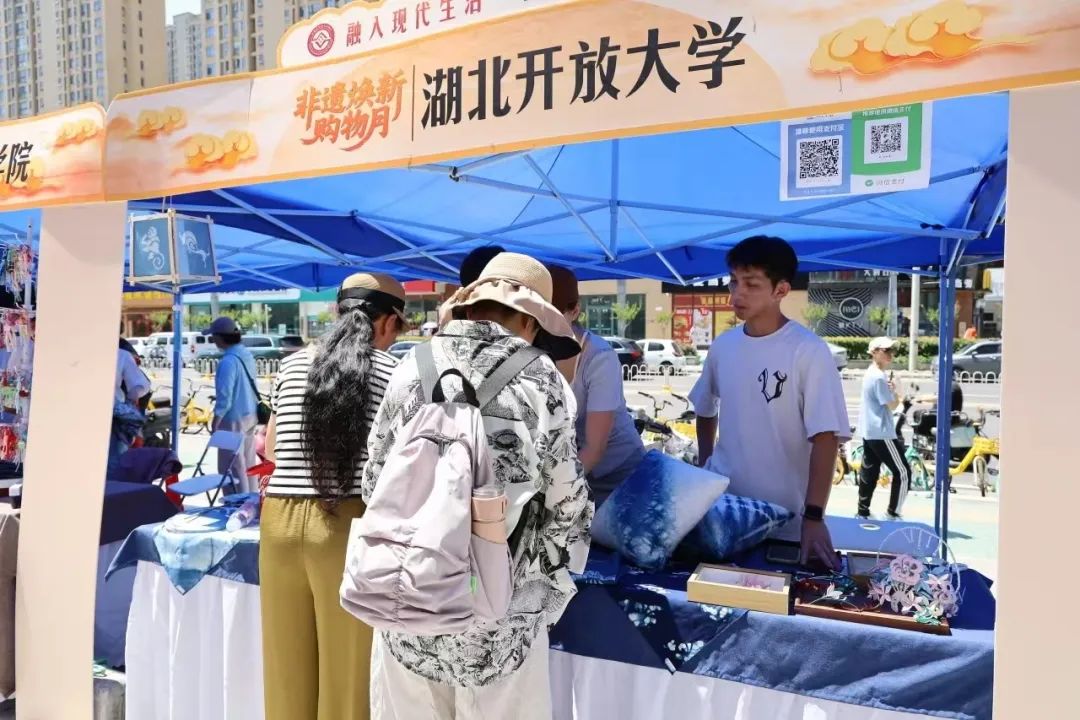 文化大厦广场上,非遗市集同样热闹非凡。市集汇集了剪纸、合香、螺钿镶嵌等传统非遗技艺展示与销售。来自中南民族大学、武汉体育学院和湖北开放大学等高校的20个非遗项目及文创作品集中展示销售,年轻创作者们将非遗元素融入文具、饰品等现代用品,让传统工艺以更贴近生活的方式走进大众视野。“这个布贴画钥匙扣既有楚文化特色,又很实用,我要多买几个送给朋友。”一位年轻市民拿着刚买到的文创产品兴奋地说。
