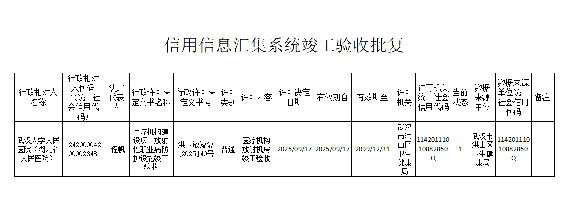 标     题 信用信息汇集系统竣工验收批复20250917