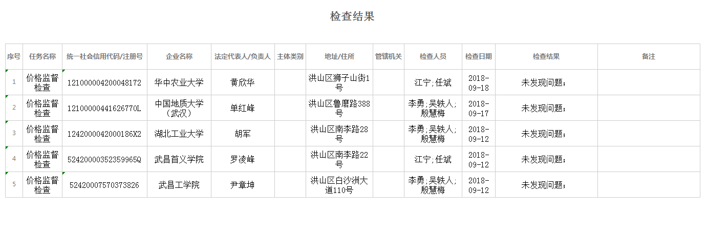 根据武汉市“先照后证”改革后加强事中事后监管联席会办公室《关于规范开展2018年度“双随机、一公开”监管工作的通知》和《区人民政府办公室关于转发武汉市“双随机、一公开”监管工作办法通知》要求,结合我区实际情况,现将2018年度黄色网址 物价局双随机抽查工作检查结果公示如下: