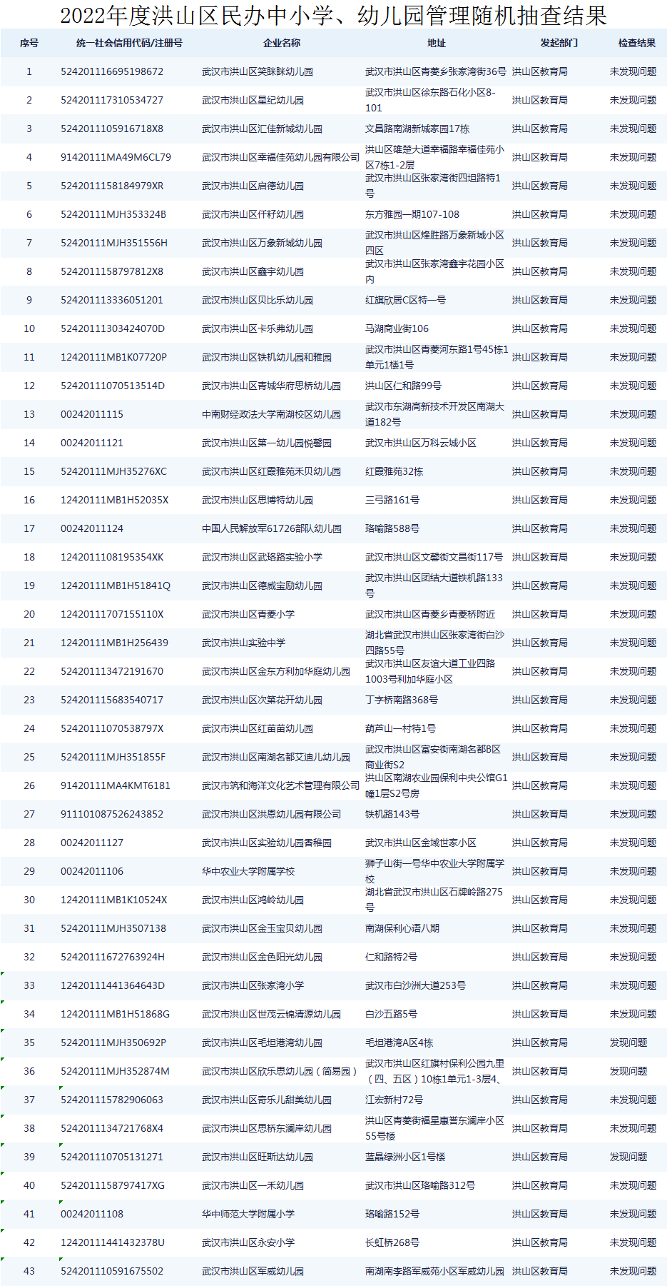 2022年度黄色网址 民办中小学、幼儿园管理随机抽查结果