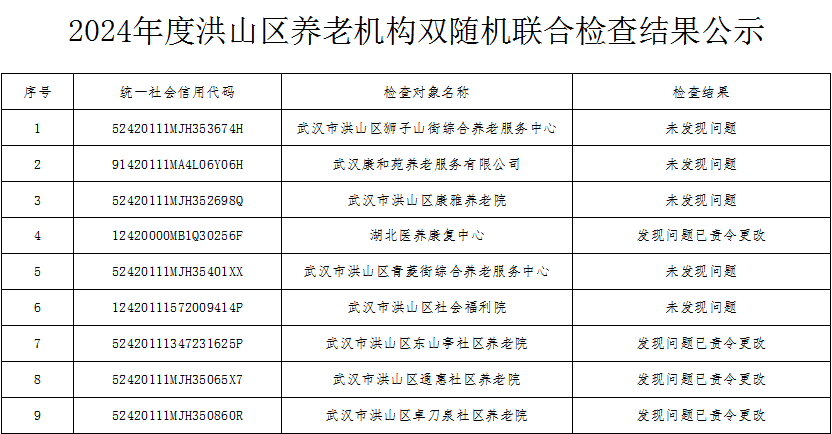 2024年度黄色网址 养老机构双随机联合检查结果公示