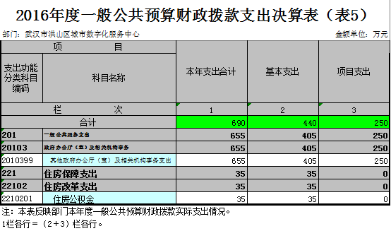 2016年一般公共预算财政拨款支出决算为690万元,其中:基本支出440万元,项目支出250万元。基本支出按支出功能分类,一般公共服务支出405万元,住房保障支出35万元。项目支出主要用于:1)中心指挥平台招聘24小时接警工作人员30名及临时聘用司机2名的工资福利、管理等支出41万元;2)中心成立用于数字化管理经费117万元;3)全区行政审批3.0版项目建设经费72万元;4)购置网络安全、运行维护硬软件及电信等经费20万元。