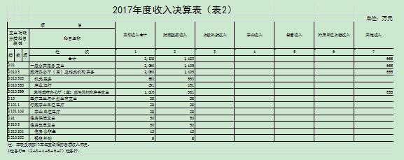 2017年度本年收入合计2,138万元。其中:财政拨款收入1,483万元,占本年收入69%;上级补助收入0万元,占本年收入0.00%;事业收入0万元,占本年收入0.00%;经营收入0万元,占本年收入0.00%;附属单位上缴收入0万元,占本年收入0.00%;其他收入655万元,占本年收入31%。
