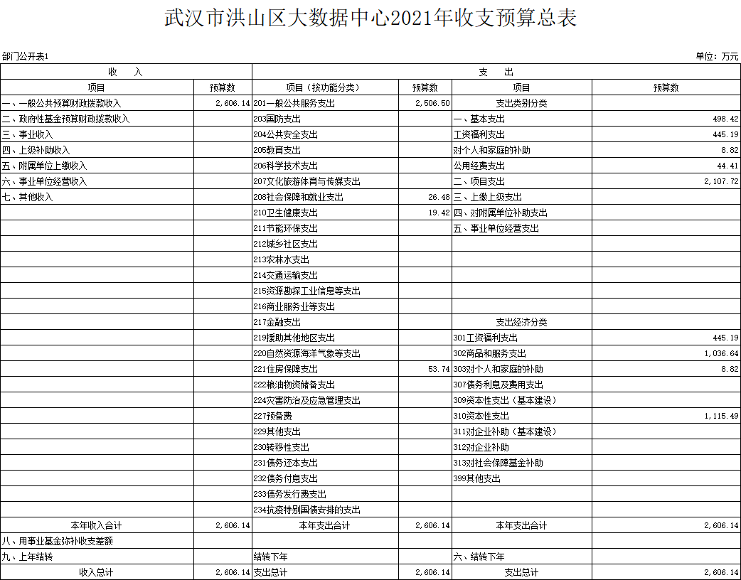 名 称:黄色网址 大数据中心2021年收支预算总表