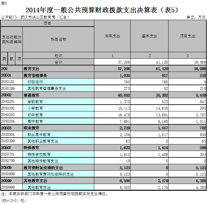 五、2014年度一般公共预算财政拨款支出决算表(表5)
