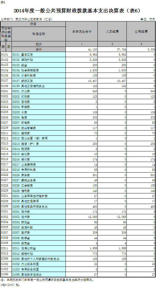 六、2014年度一般公共预算财政拨款基本支出决算表(表6)