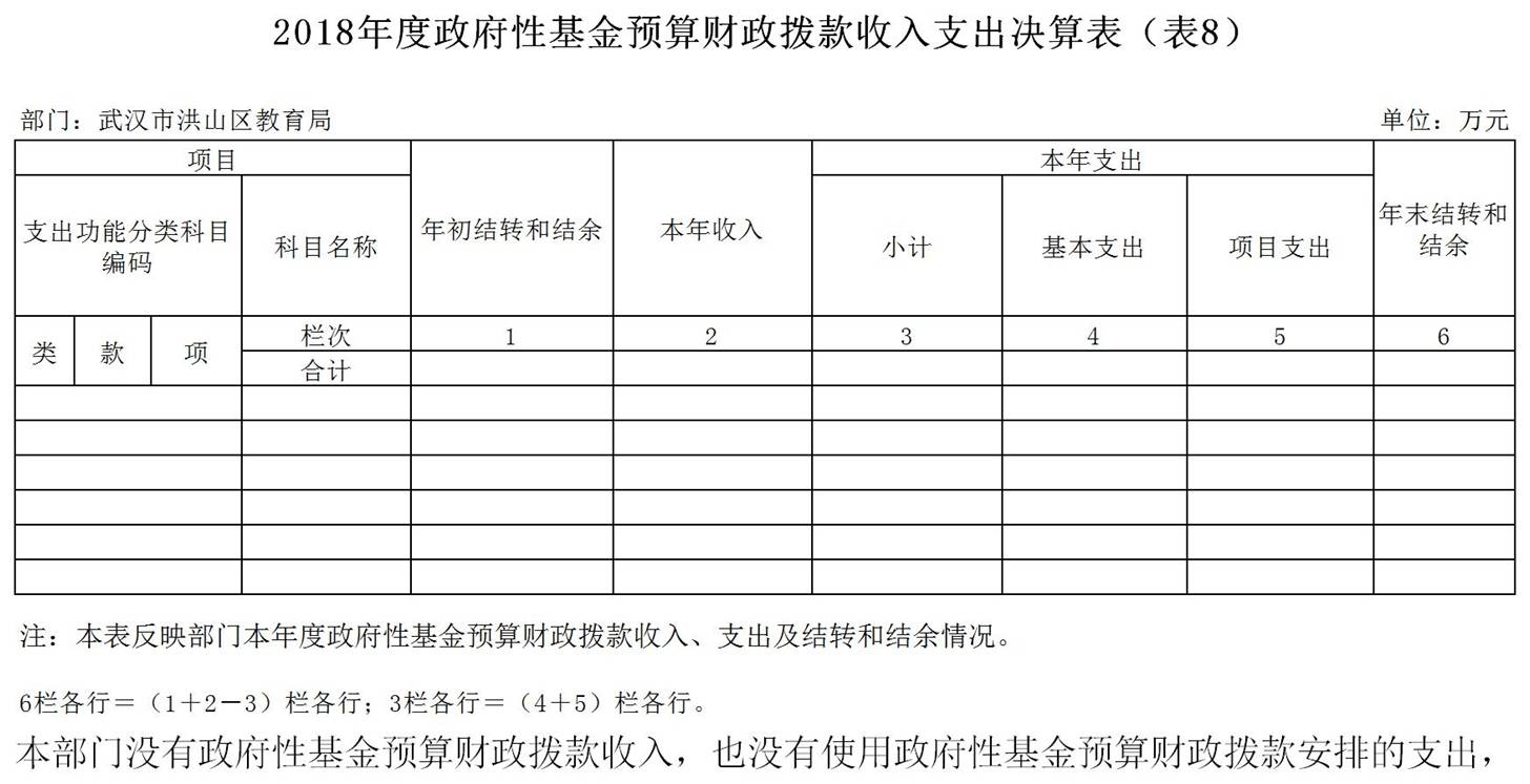 八、政府性基金预算财政拨款收入支出决算表(表8)