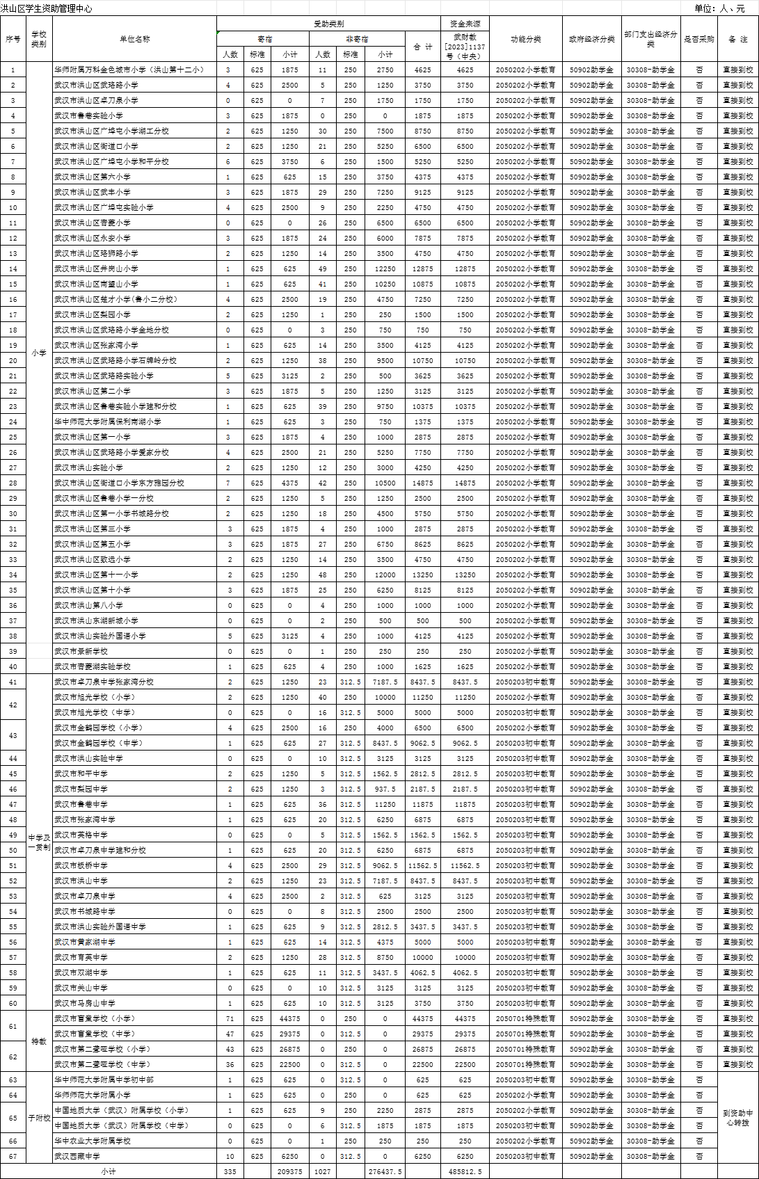 2024年春季学期义务教育家庭经济困难学生生活费补助资金统计表