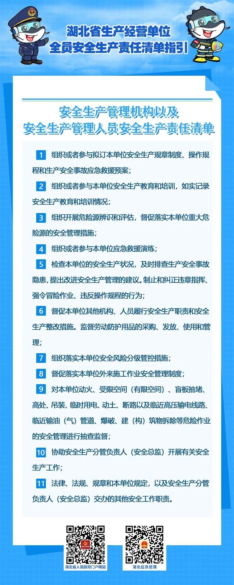 【图文解读】湖北省生产经营单位主要负责人安全生产职责清单、湖北省生产经营单位全员安全生产责任清单