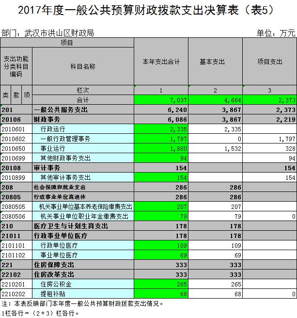 2017年一般公共预算财政拨款支出年度预算为5,296万元(包括年初部门预算、基本建设等专项资金、上级下达的专项转移支付资金及年初结转和结余资金等),支出决算为7,037万元,完成年度预算的132.87%。其中:基本支出4,664万元,项目支出2,373万元。项目支出主要用于: