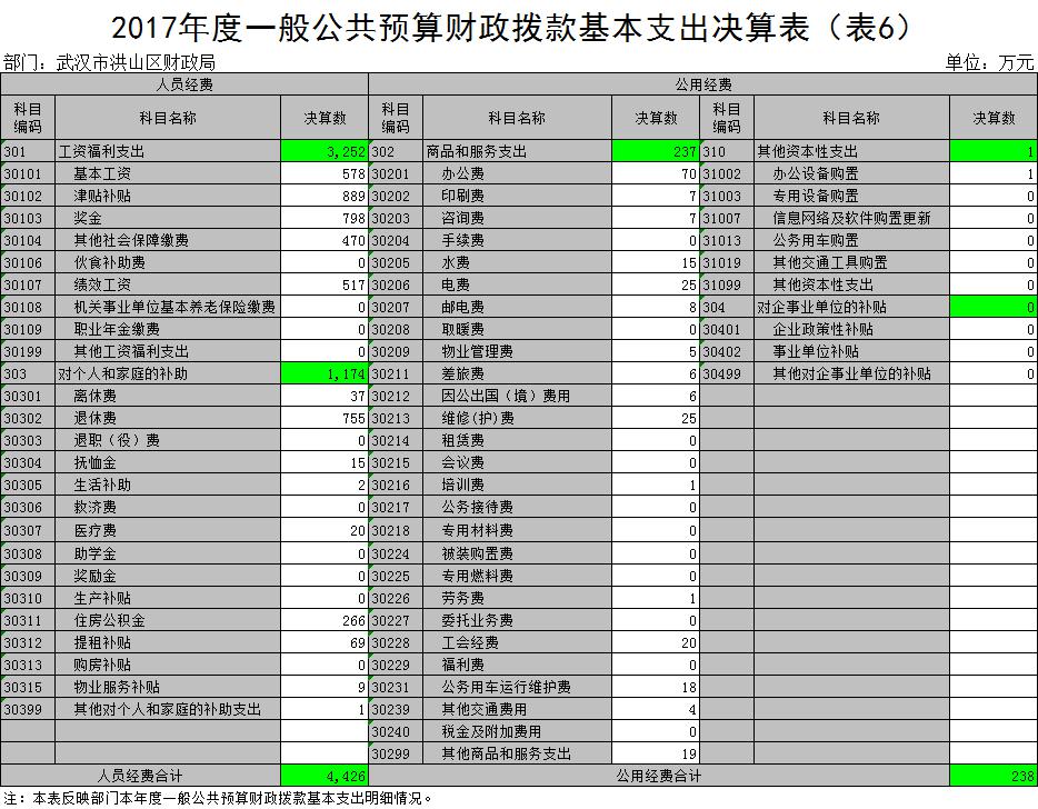 2017度一般公共预算财政拨款基本支出4,664万元,其中,人员经费4,426万元,主要包括:基本工资、津贴补贴、奖金、其他社会保障缴费、伙食补助费、绩效工资、机关事业单位基本养老保险缴费、职业年金缴费、其他工资福利支出、离休费、退休费、退职(役)费、抚恤金、生活补助、救济费、医疗费、助学金、奖励金、生产补贴、住房公积金、提租补贴、购房补贴、物业服务补贴、其他对个人和家庭的补助支出;公用经费238万元,主要包括:办公费、印刷费、咨询费、手续费、水费、电费、邮电费、取暖费、物业管理费、差旅费、因公出国(境)费、维修(护)费、租赁费、会议费、培训费、公务接待费、专用材料费、被装购置费、专用燃料费、劳务费、委托业务费、工会经费、福利费、公务用车运行维护费、其他交通费用、税金及附加费用、其他商品和服务支出、办公设备购置、专用设备购置、信息网络及软件购置更新、公务用车购置、其他交通工具购置、其他资本性支出、企业政策性补贴、事业单位补贴、其他对企事业单位的补贴。
