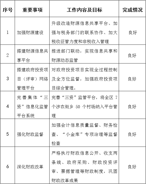 一是进一步加强会计信息质量监督工作;二是加强财政内部控制制度体系建设,出台内部控制基本制度、制定六个内部控制办法;三是完成“小金库”专项治理工作,完成对列入2016年“小金库”专项治理范围的257家单位自查自纠、重点抽查及整改完善三个阶段工作任务;四是开展内部监督检查,2017年2-3月对局机关、工会、经管站及洪山街、张家湾街、青菱街、和平街、天兴乡等5个财政所,共8家单位的2016年财务管理及票据使用情况进行了内部监督检查,并提出相应的整改要求;五是完成财务管理违规问题专项治理工作。