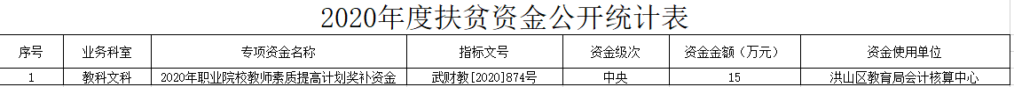 名 称:市财政局市教育局关于下达2020年职业院校教师素质提高计划奖补资金预算的通知 |