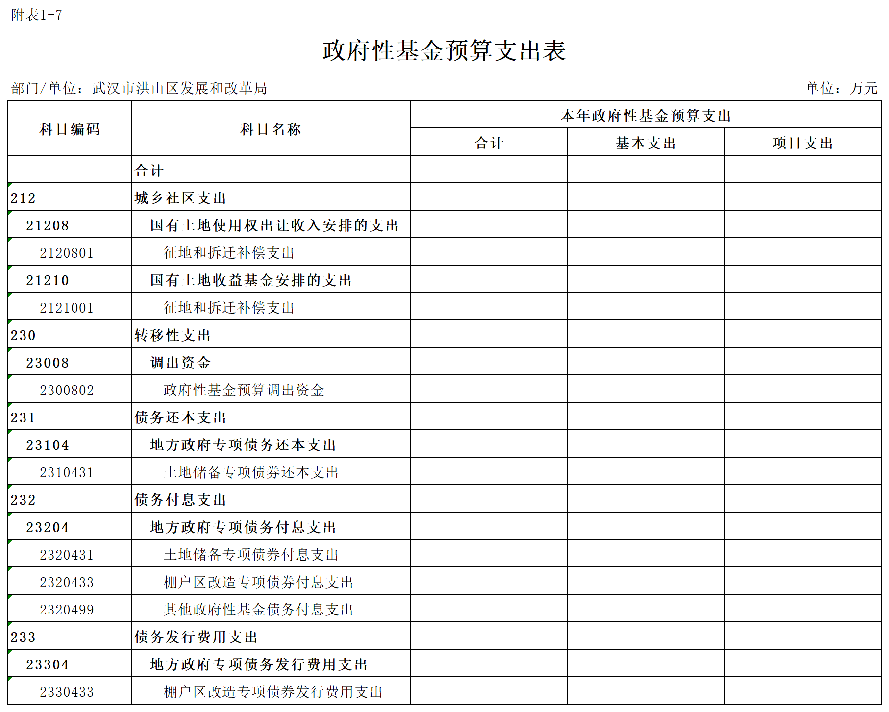 七、政府性基金预算支出表