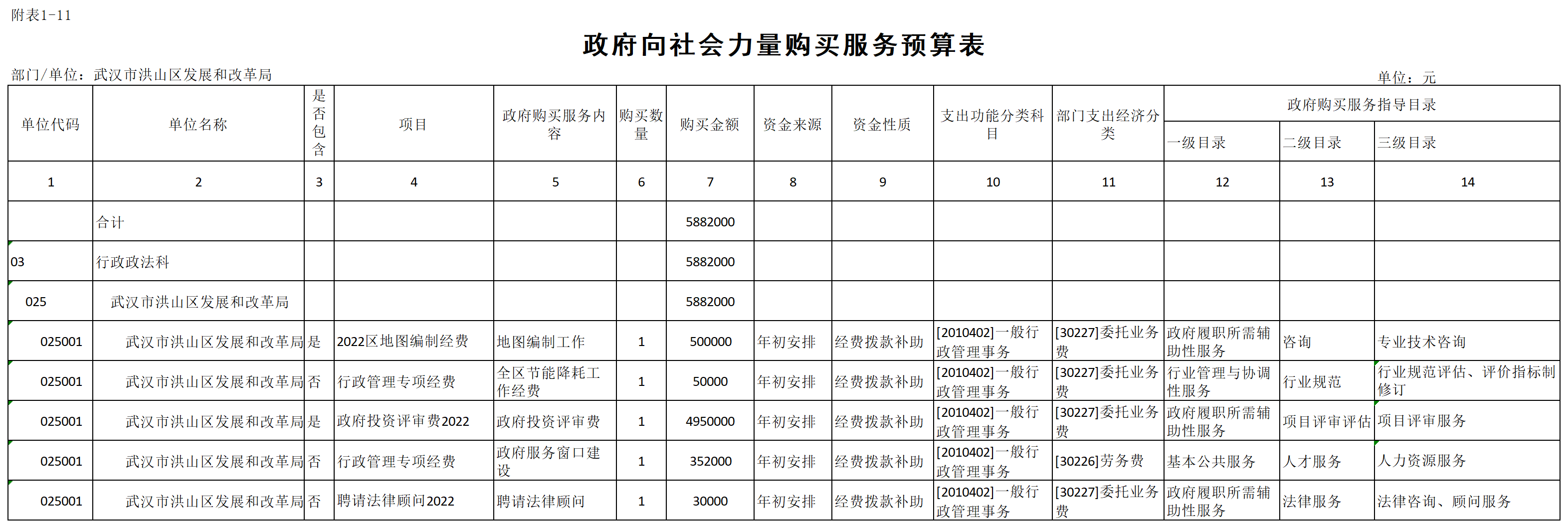 十一、政府购买服务预算表