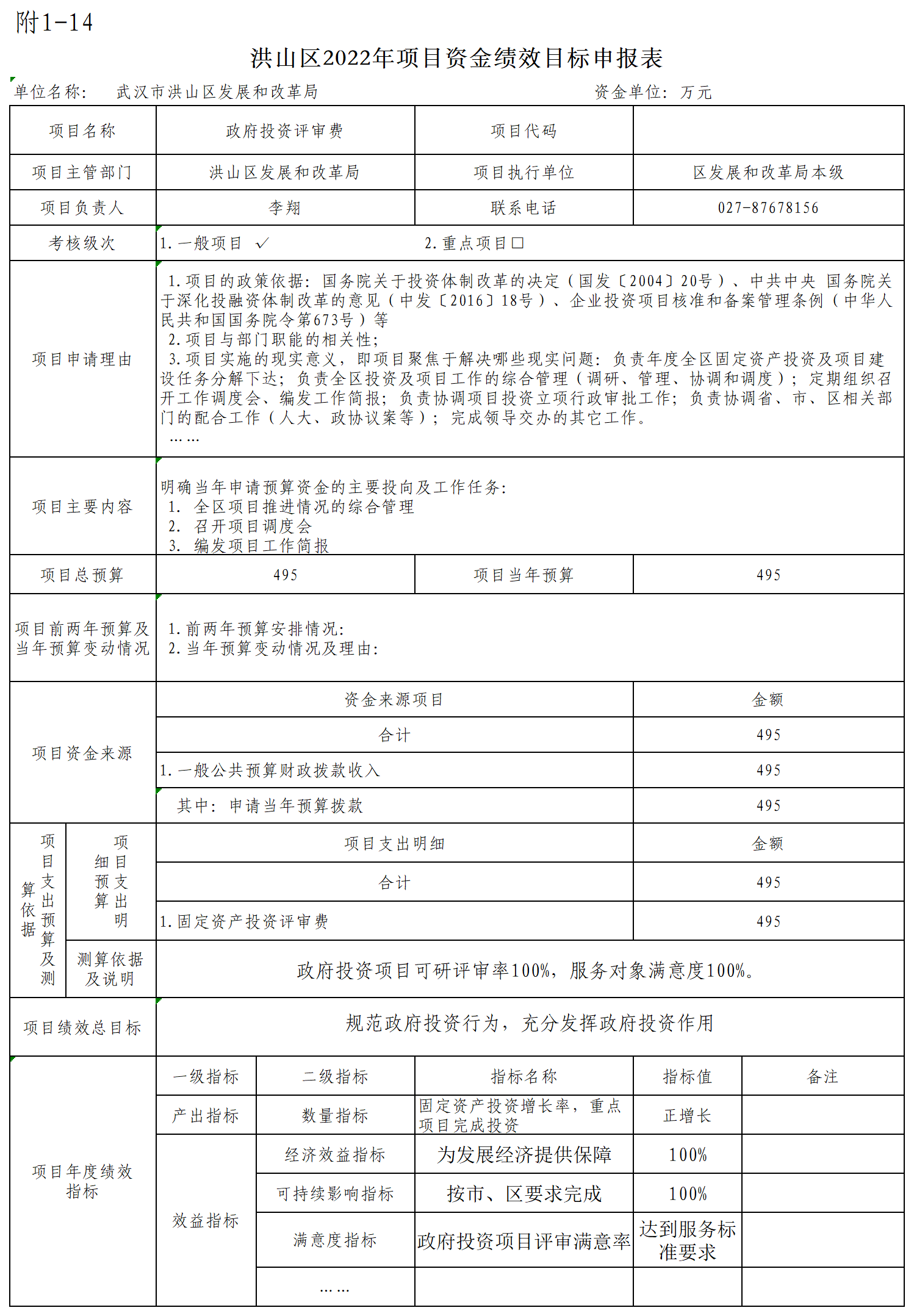 1、政府投资项目评审费495万元
