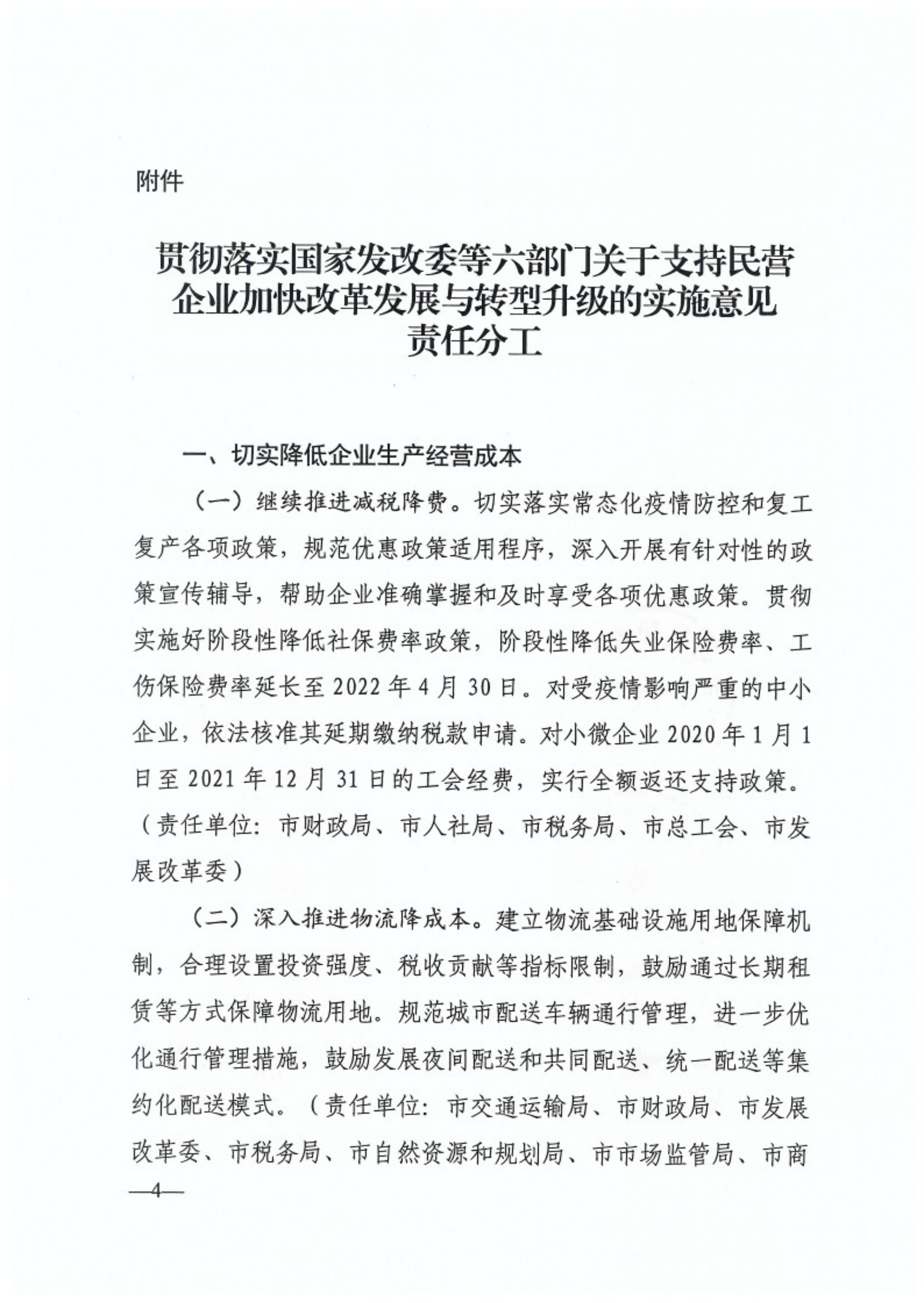 名 称:关于贯彻落实国家发改委等六部门支持民营企业加快改革发展与转型升级实施意见责任分工的通知
