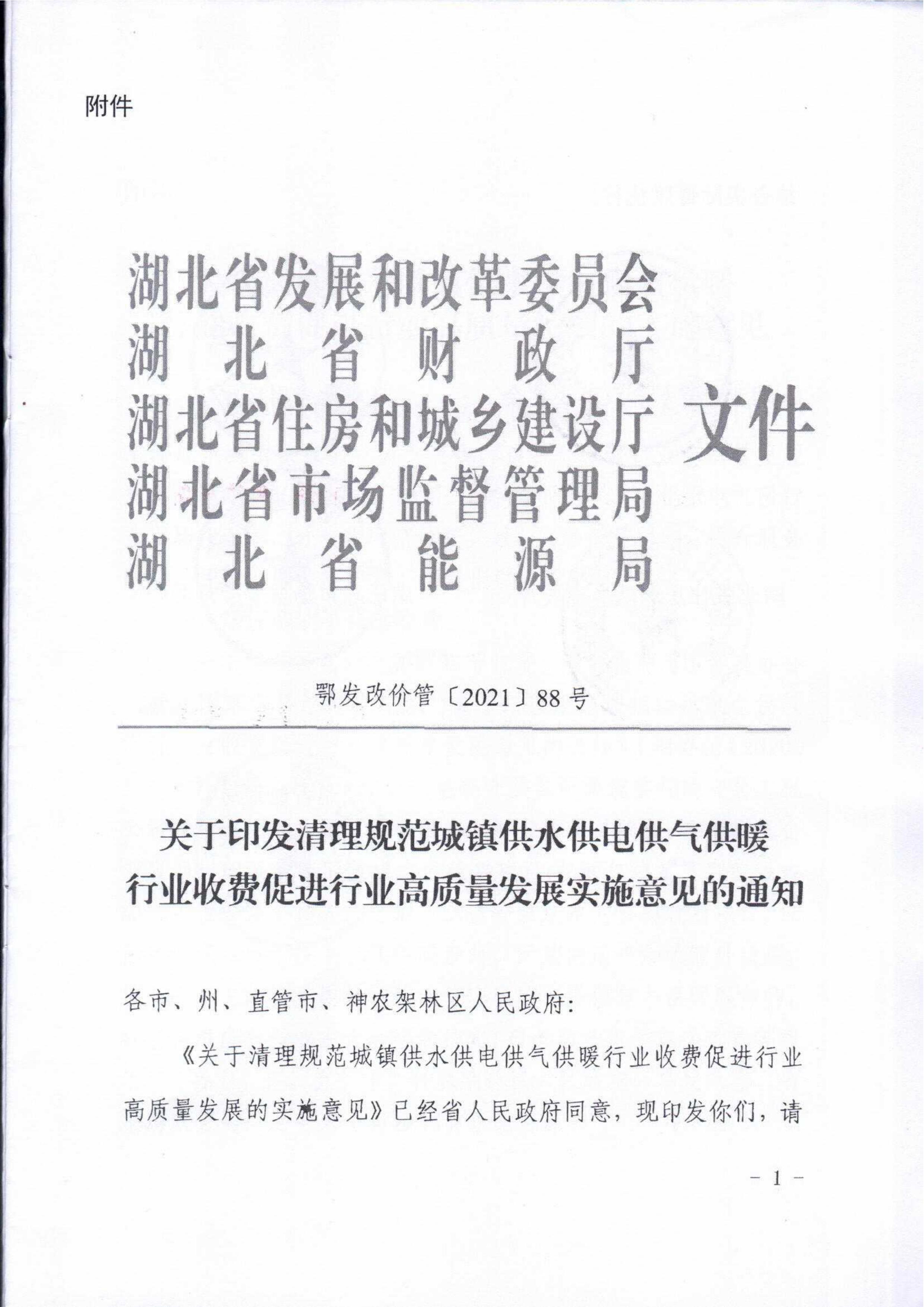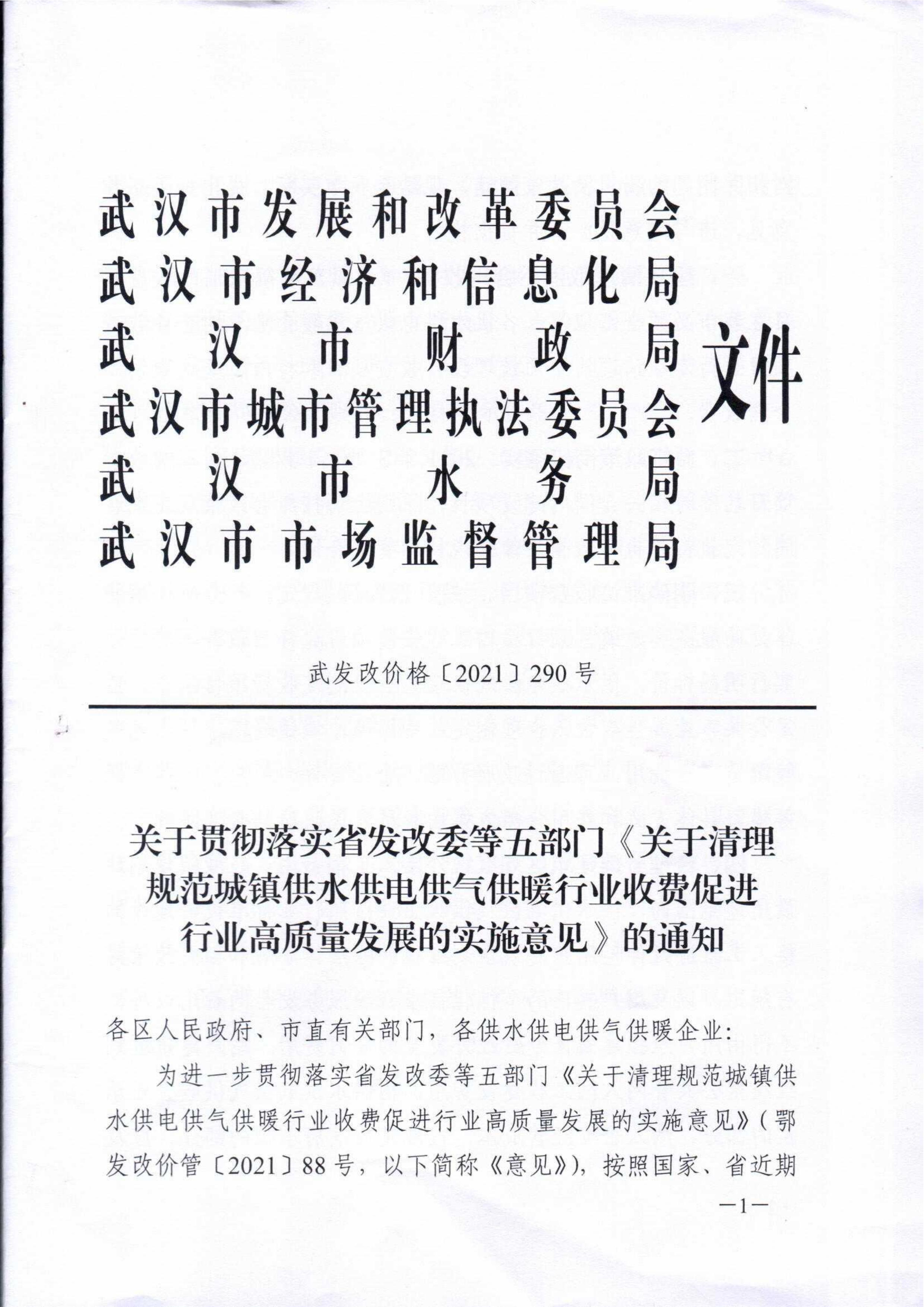 名 称:关于贯彻落实水电气暖行业收费意见的通知(武发改价格【2021】290号)