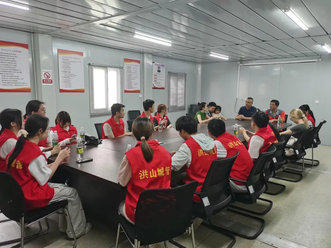 在现场参观完后,广美城市运维有关负责人和13名大学生志愿者齐聚一堂热烈交流,大家主要对环卫工人作业时间和方式比较感兴趣,当大家了解到环卫工人早上5点左右就要进行人工早扫,夜班主要进行道路机械清洗时,志愿者们均表示环卫工人十分不易,应当给与更多的关爱。