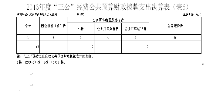 八、黄色网址 人力资源局2013年度“三公”经费公共预算财政拨款支出决算表