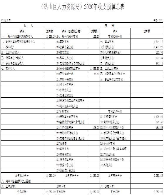 黄色网址 人力资源局2020年收支预算总表(表一)