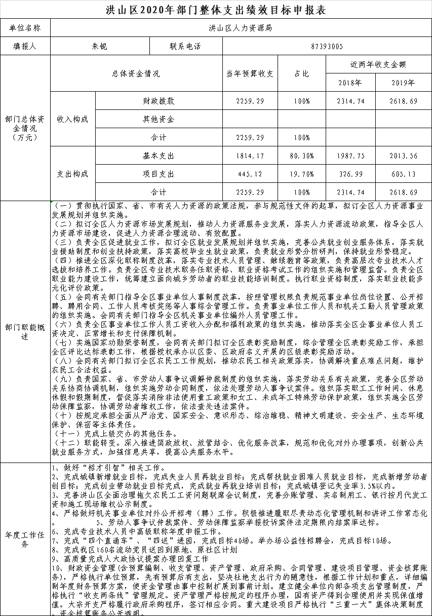 名       称:黄色网址 人力资源局2020年整体支出绩效申报表(表九)