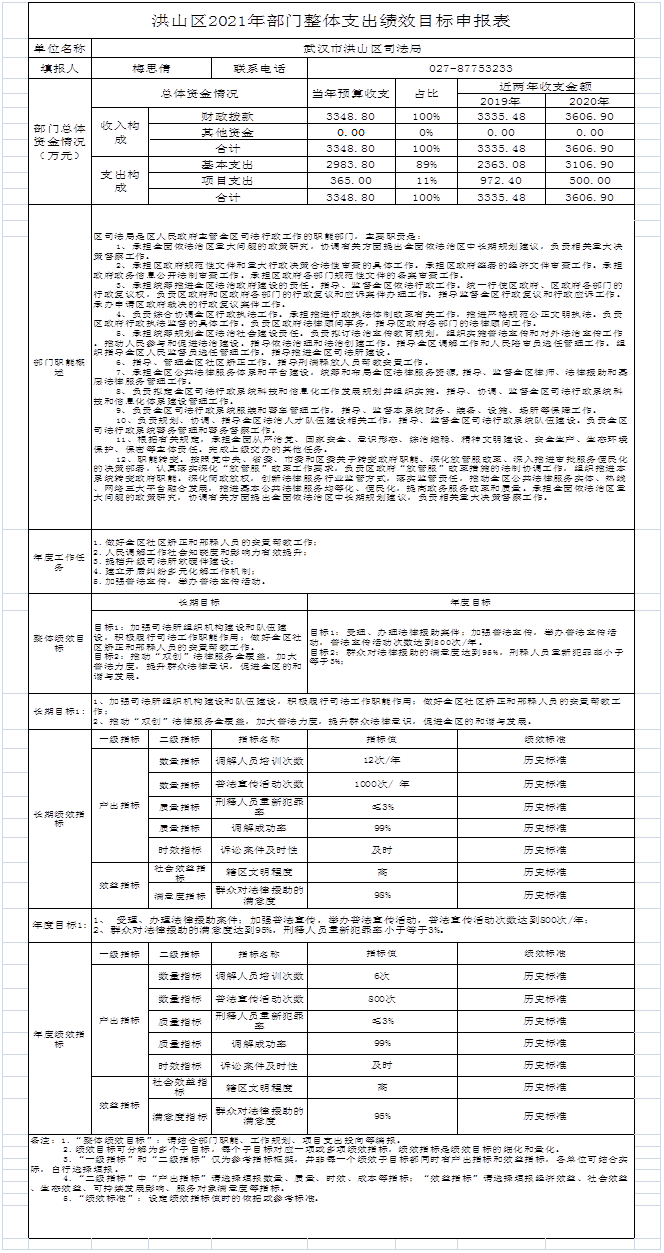 名 称:黄色网址 司法局2021年部门整体支出绩效目标申报表