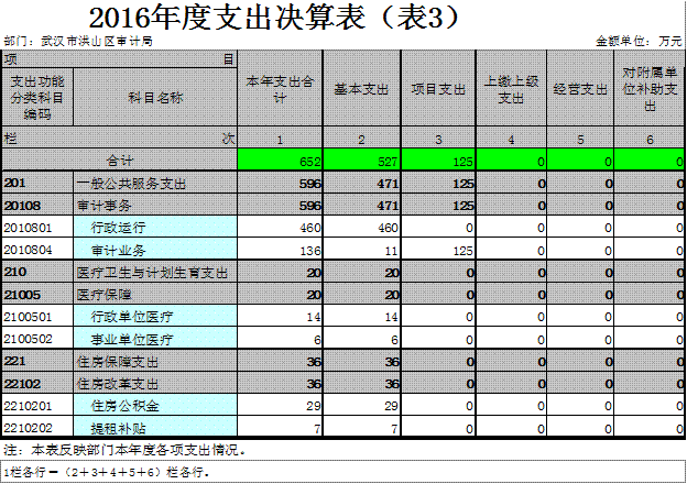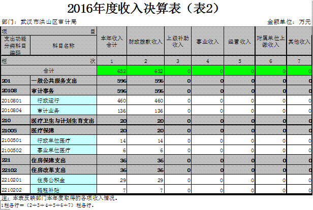 2016年度收入总计652万元,支出总计652万元。与2015年相比,收、支总计各增加 2万元,增长 0.31 %,主要原因是审计任务增加,相关工作经费增加。