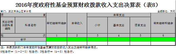 八、政府性基金预算财政拨款收入支出决算表(表8)