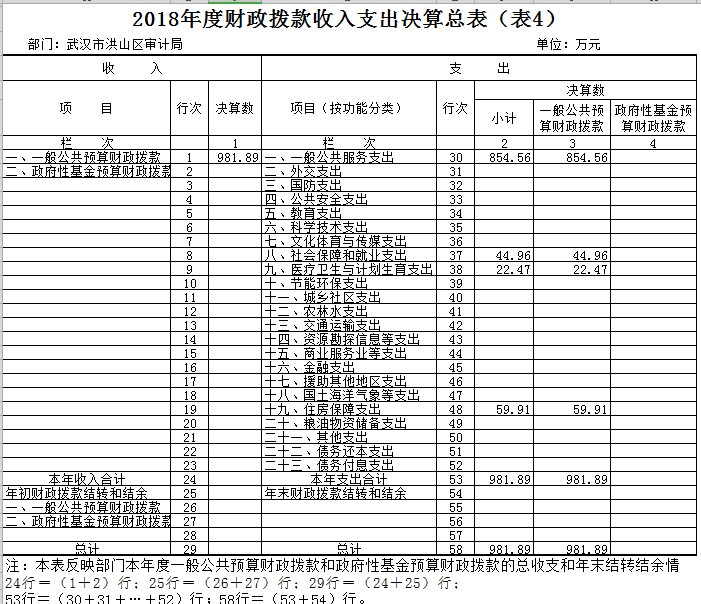 四、财政拨款收入支出决算总表(表4)