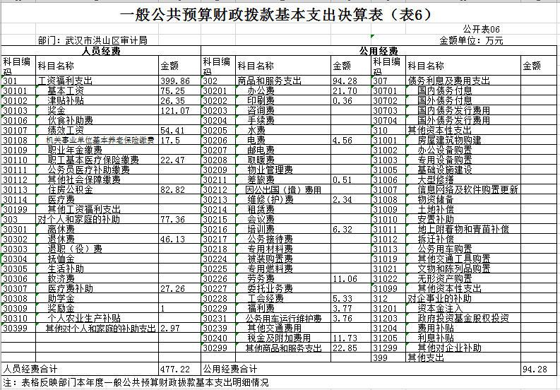 六、一般公共预算财政拨款基本支出决算表(表6)