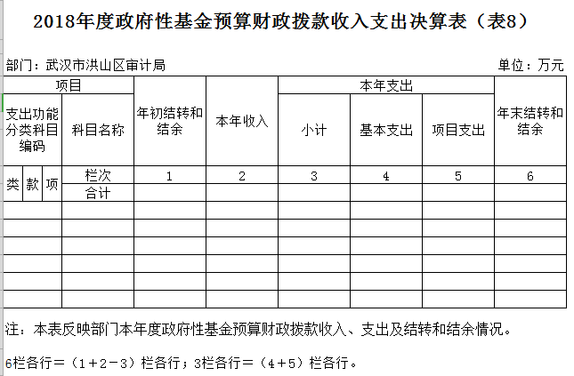 八、政府性基金预算财政拨款收入支出决算表(表8)