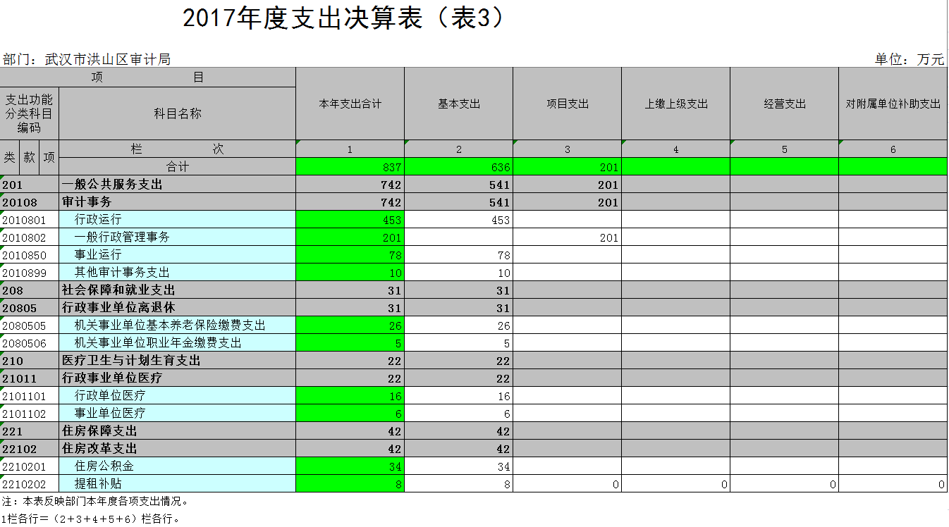2017年度本年支出合计837万元。其中:基本支出636万元,占本年支出75.99%;项目支出201万元,占本年支出24%;上缴上级支出0万元,占本年支出0%;经营支出0万元,占本年支出0%;对附属单位补助支出0万元,占本年支出0%。