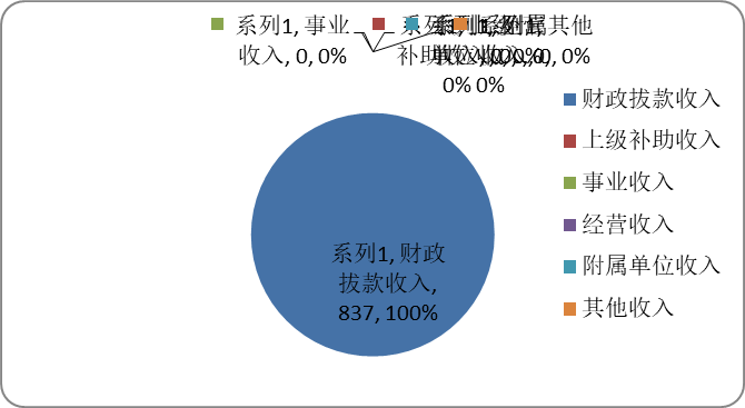 2017年度本年收入合计837万元。其中:财政拨款收入837万元,占本年收入100%;上级补助收入0万元,占本年收入0%;事业收入0万元,占本年收入0%;经营收入0万元,占本年收入0%;附属单位上缴收入0万元,占本年收入0%;其他收入0万元,占本年收入0%。