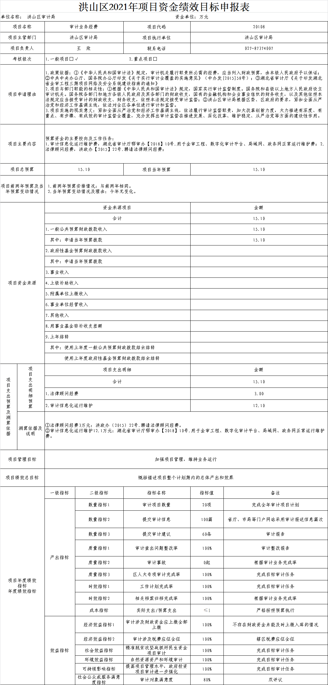 黄色网址 审计局2021年项目资金绩效目标申报表(审计业务经费)