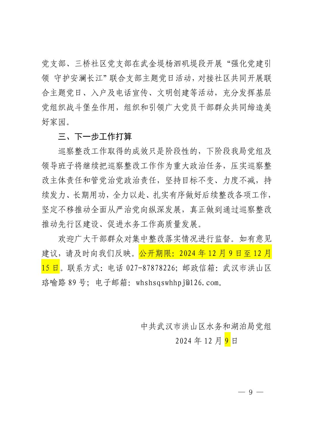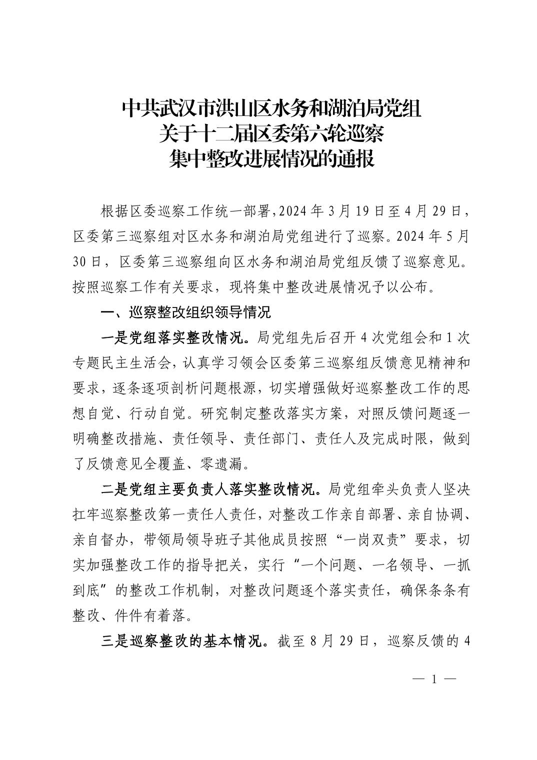 名 称:中共黄色网址 水务和湖泊局党组关于十二届区委第六轮巡察集中整改进展情况的通报