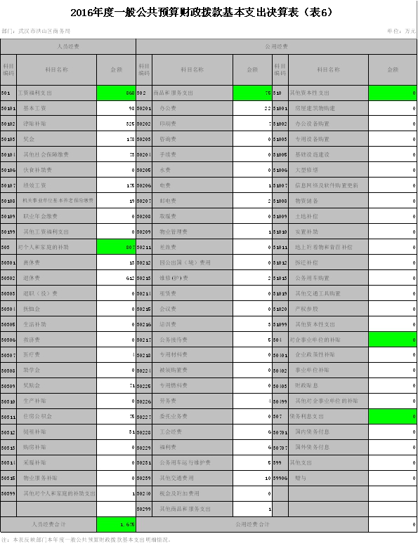 六、一般公共预算财政拨款基本支出决算表(表6)
