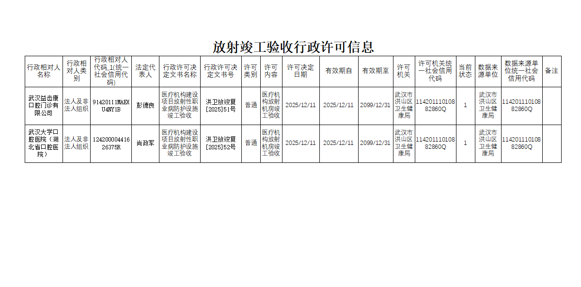 名 称:放射竣工验收行政许可信息1211