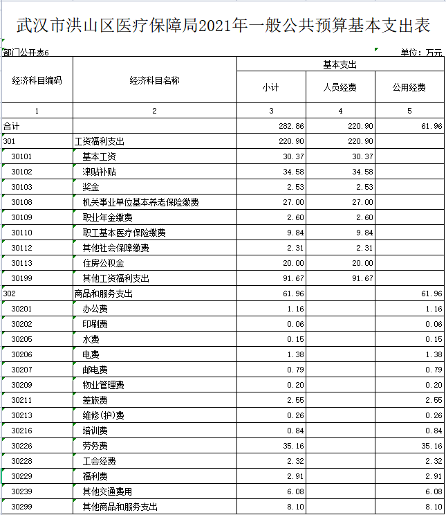 注:基本支出 282.86万元,其中人员经费 220.9万元,公用经费 61.96万元。