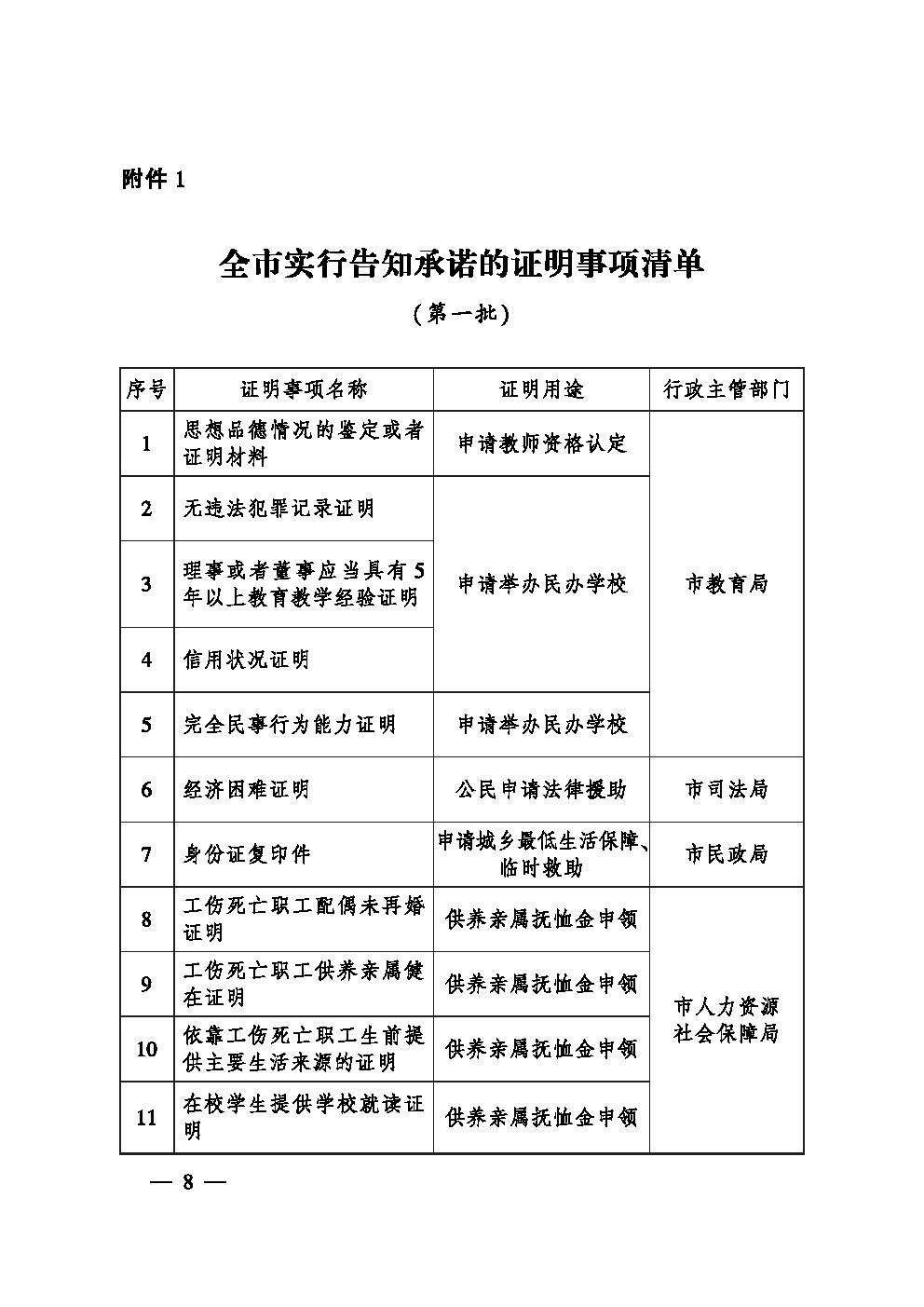 附件:1.全市实行告知承诺的证明事项清单(第一批)
