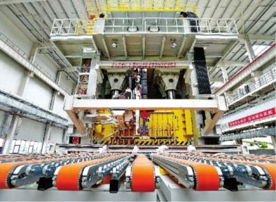 吉利汽车年产15万辆乘用车项目冲压车间内,全伺服高速自动化冲压线正在组装。记者李永刚 摄