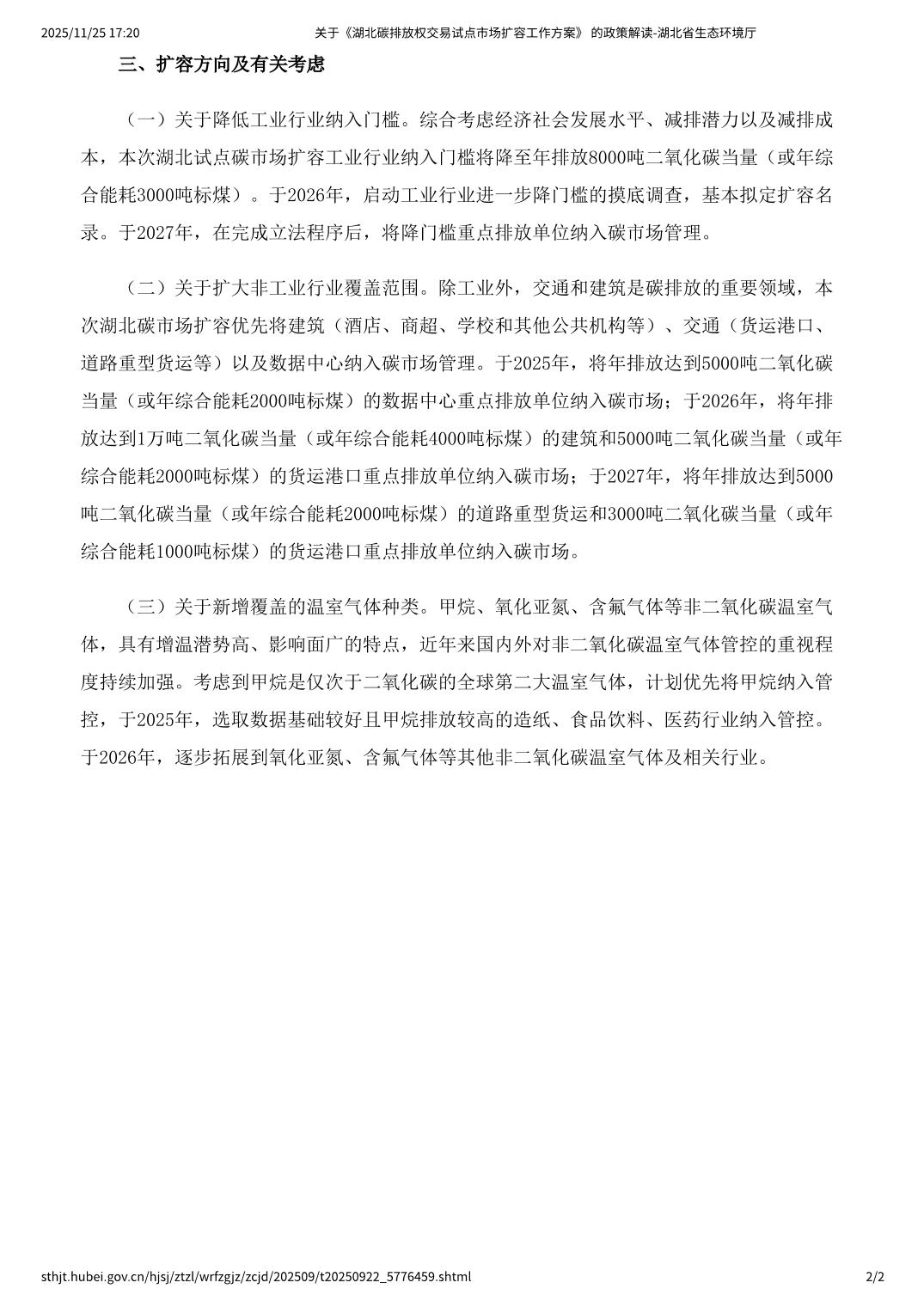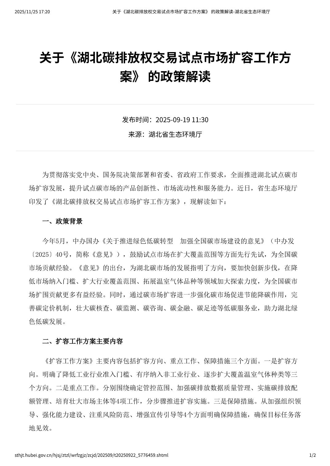关于《湖北碳排放权交易试点市场扩容工作方案》 的政策解读